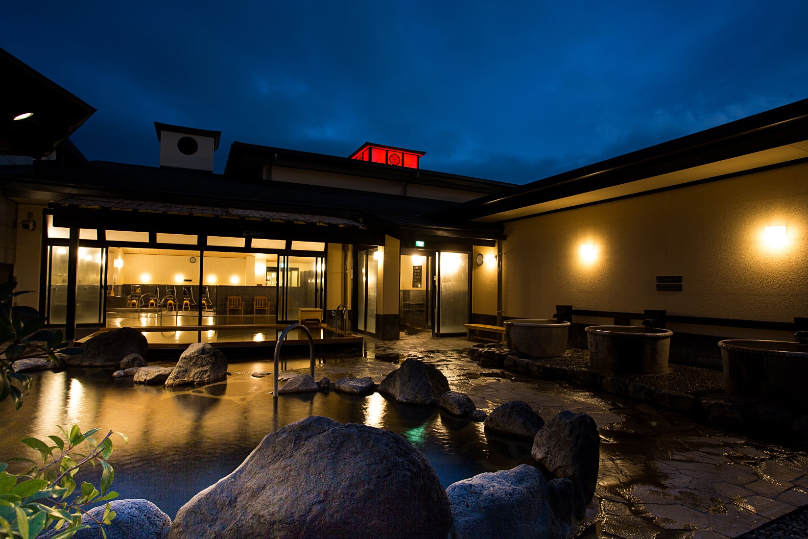 燈屋の「和こしの湯」は弱アルカリ性単純温泉。 趣向を凝らした自慢の湯原郷をお楽しみください。
